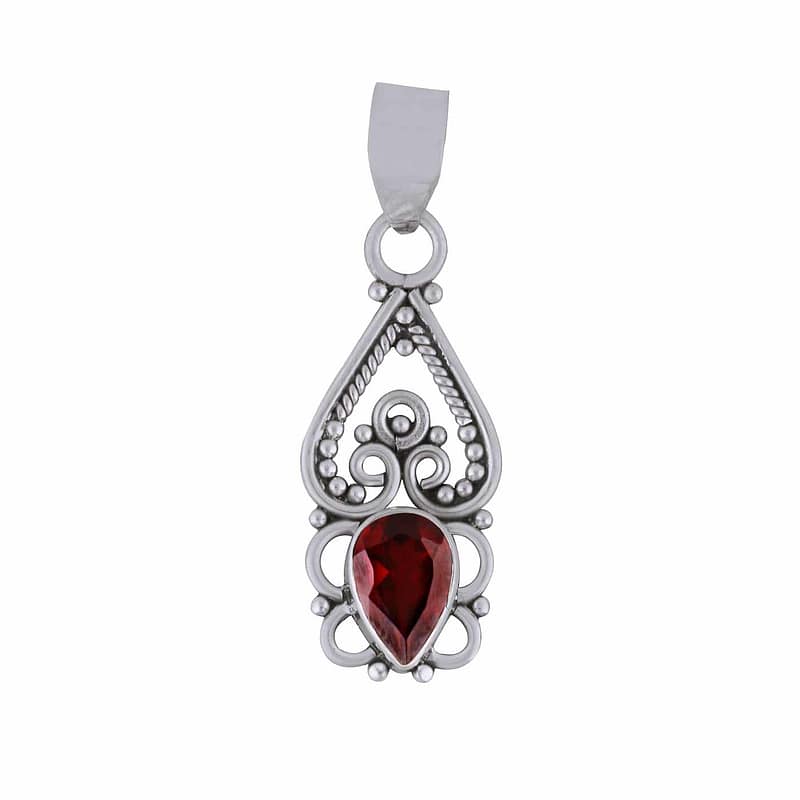 Gina Garnet Cut Stone Silver Pendant