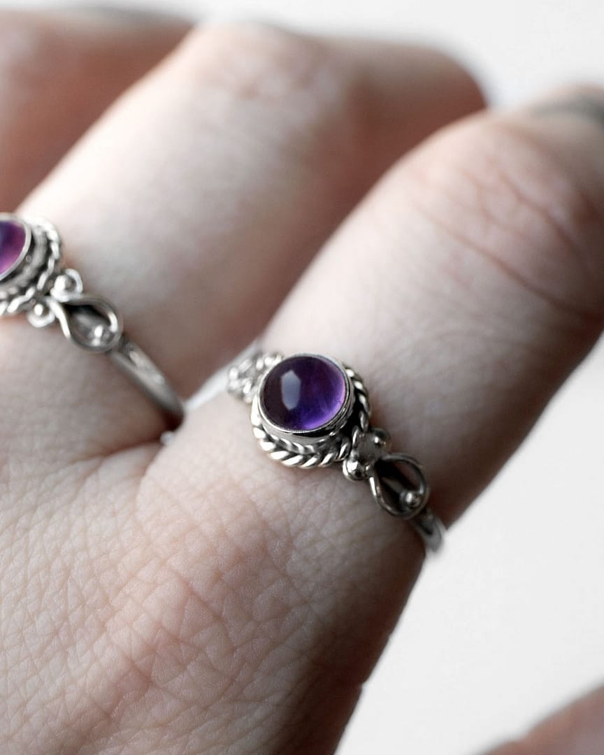 Listing is for Amaya Stackable Amethyst Silver Ring only. All other items shown are for stylistic purposes only.