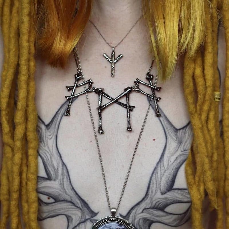 Branch Lucifer Sigil Necklace. Double sided. Antique silver colour with grunge texture. Adds instant occult vibes to any outfit!