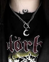 Inspired by lunar allure, this Crescent Moon Stainless Steel Necklace pays homage to the moon’s ever-changing phases with a waxing crescent moon pendant. A large T-bar lock adds decorative functionality. Collarbone-length. Made of sturdy Stainless Steel.