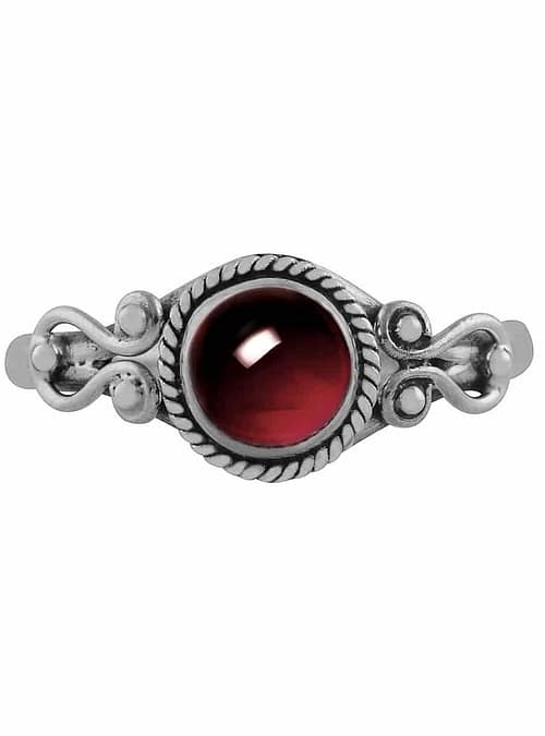 Beautiful Amaya! A sterling silver ring with intricate details & a round blood-red Garnet stone centred in the middle. From Spanish origins, the name Amaya means Mother City & from Japanese; Heavenly Valley. Why not gift her to someone who makes you feel at home? Or simply wear it yourself! After all; Home is where the heart is!